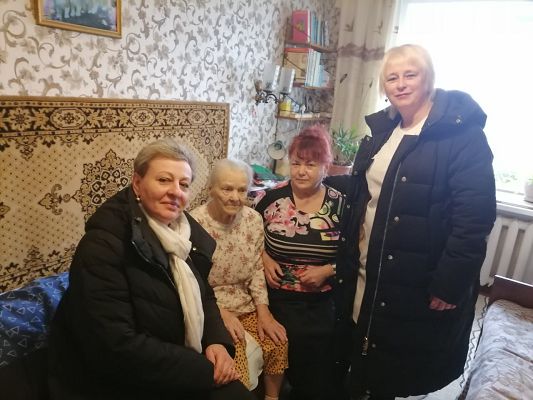 Председатель первичной профсоюзной организации ЦРБ Инина Ляховец и председатель первичной организации «Белорусский Союз Женщин Лельчицкой ЦРБ» Светлана Зубрей пришли поздравить Ольгу Мининичну от имени бывших коллег.