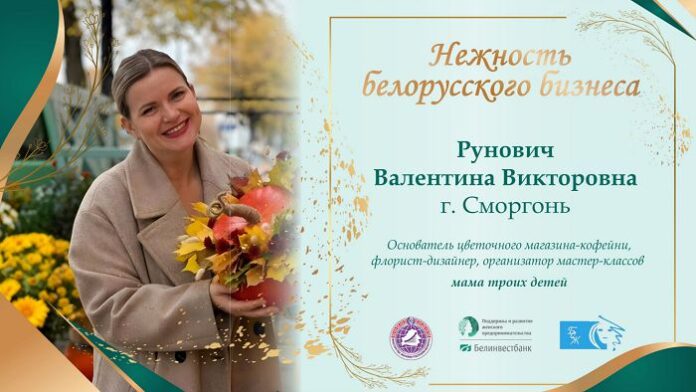 Валентина Викторовна Рунович – основательница компании, сочетающей флористику, мастер-классы и атмосферу уютной кофейни. Её путь в бизнес начался с курсов флористики, которые она прошла почти три года назад. Именно с этого момента началось её погружение в мир цветов и творчества, которое подтолкнуло ее на совместное с супругом решение открыть в 2023 г. в г. Сморгонь собственный бизнес.