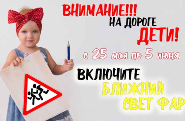 В связи с окончанием учебного года и началом летних каникул, в целях предупреждения дорожных происшествий с участием детей и подростков, в Республике Беларусь будет проведено республиканское профилактическое специальное комплексное мероприятие «Внимание – дети!», в рамках которого, в соответствии с требованием пункта 166.9 Правил дорожного движения,в период с 25 мая по 5 июня необходимо в обязательном порядке включить на транспортном средстве ближний свет фар или дневные ходовые огни (при их наличии) при движении в светлое время суток.