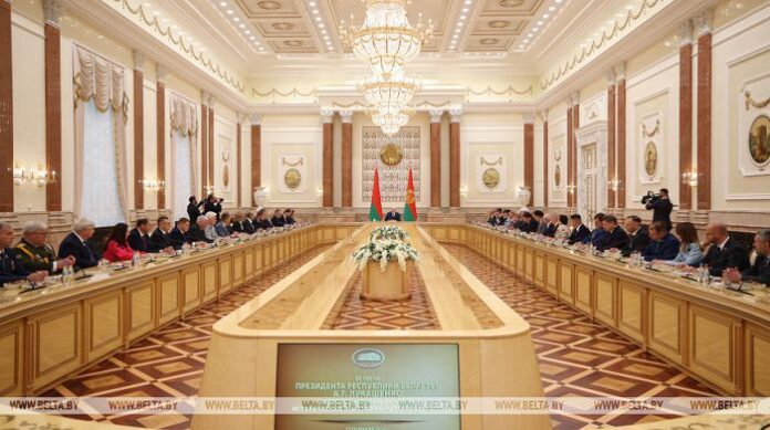 Ученые, педагоги, журналисты и эксперты должны действовать в рамках единой стратегии формирования исторической памяти. Об этом Президент Беларуси Александр Лукашенко заявил во время встречи с идеологическим активом, историческим и экспертным сообществом, посвященной Дню народного единства, передает корреспондент БЕЛТА.