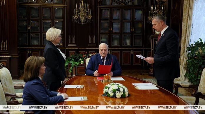 Глава государства дал согласие на назначение Надежды Лазаревич председателем Белорусского государственного концерна по производству и реализации товаров легкой промышленности (концерн «Беллегпром»). До настоящего времени она занимала пост первого заместителя председателя Минского горисполкома. В свою очередь Татьяна Лугина, которая до настоящего времени руководила концерном «Беллегпром», теперь возглавит ОАО «Камволь».