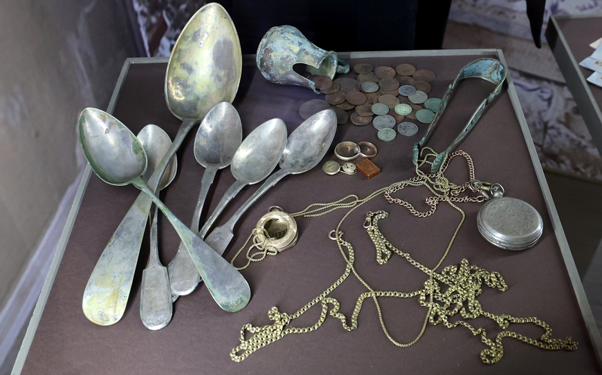 Сярод знаходак — манеты Расійскай імперыі пачатку ХХ стагоддзя, залатыя ўпрыгажэнні, прадметы побыту, сталовы посуд. У скарбе агулам 67 розных рэчаў.
