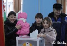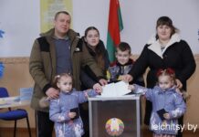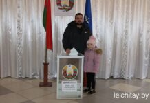 На избирательный участок №1, расположенный в лельчицкой средней школе №1, в компании коллег пришла и лельчанка Екатерина Сычевская: