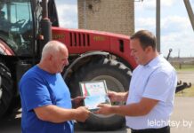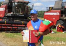 Сегодня чествовали первого водителя-тысячника Лельчицкого района Леонида Лося из ОАО «Новая Нива», занятого на отвозке зерна от комбайна.