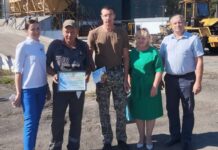 Торжественное чествование двух экипажей комбайнеров, которые достигли впечатляющего результата — каждый из них намолотил по 1000 тонн зерна.